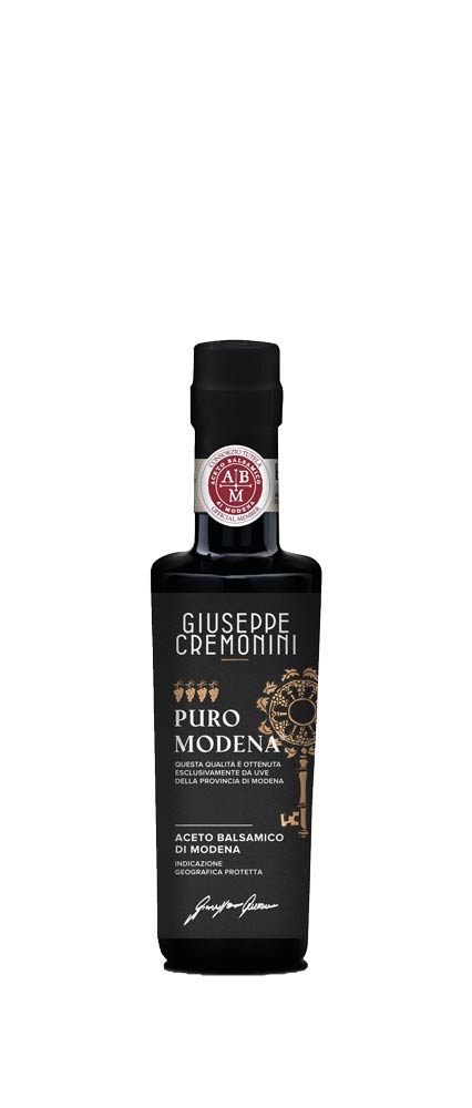 Der granatrote Aceto Balsamico Puro Modena Spezial wird ausschließlich aus Lambrusco Trauben I.G.T. (geschützte geographische Herkunftsbezeichnung) gewonnen und mindestens 6 Monate in Barriques gealtert. Seine intensiv fruchtige Duftnote erinnert an die typischen Aromen des Lambrusco Weins. Durch seinen harmonisch süßen Geschmack eignet er sich ganz besonders gut für Salatvariationen sowie für das Marinieren von Steaks, Thunfisch und Lachs vor dem Grillen.