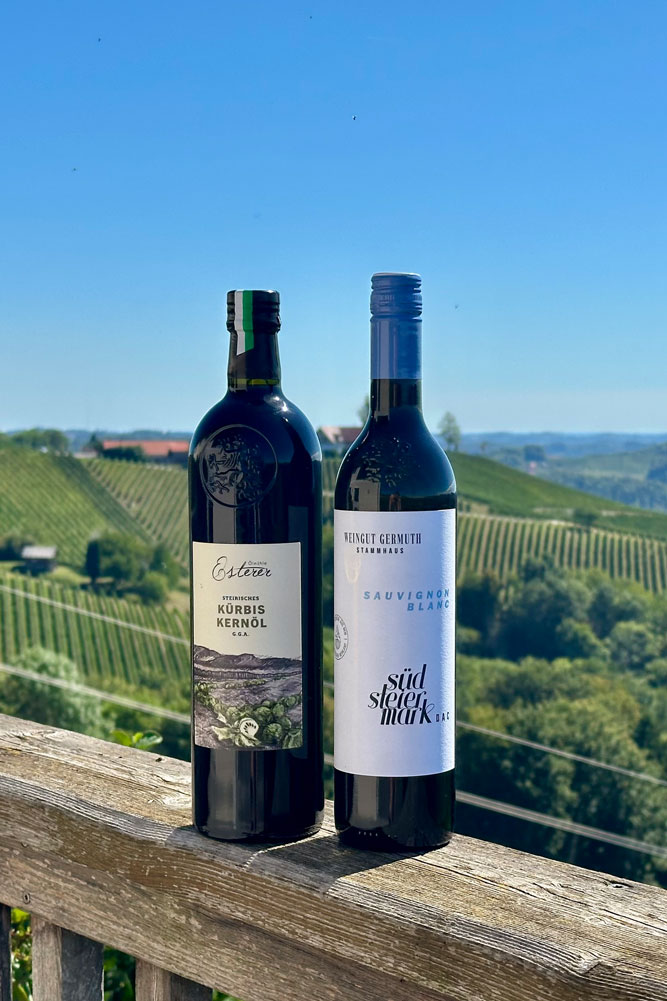 Dieses Bundle besteht aus 1 x 1,00l Steirisches Kürbiskernöl g.g.A. und 1 x 0,75l Sauvignon Blanc