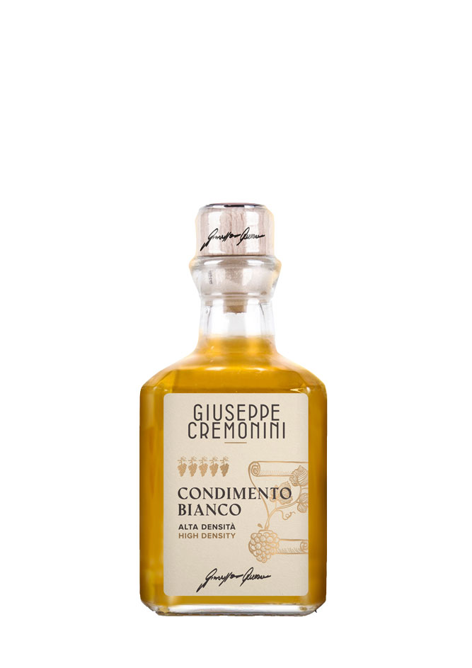 Der feine Weiße Aceto Balsamico di Modena IGP 5 Trauben, auch Aceto die Modena Bianco genannt, hebt sich durch seine dickflüssige und cremige Konsistenz mit einem fruchten Aroma ab. Er harmoniert hervorragend mit Fischgerichten, weißem Fleich, hellen Blattsalaten, Gemüse und Obstsalat.